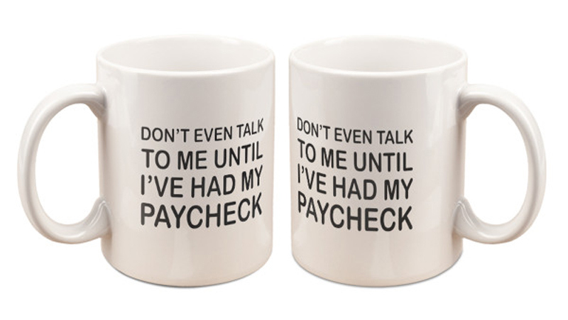 After making its late-night debut on January 17, The Late Show with Stephen Colbert's "Shutdown Mug," which features the all-too apropos phrase "Don't Even Talk To Me Until I've Had My Paycheck," is officially available for purchase at colbertlateshow.com/shutdownmug.