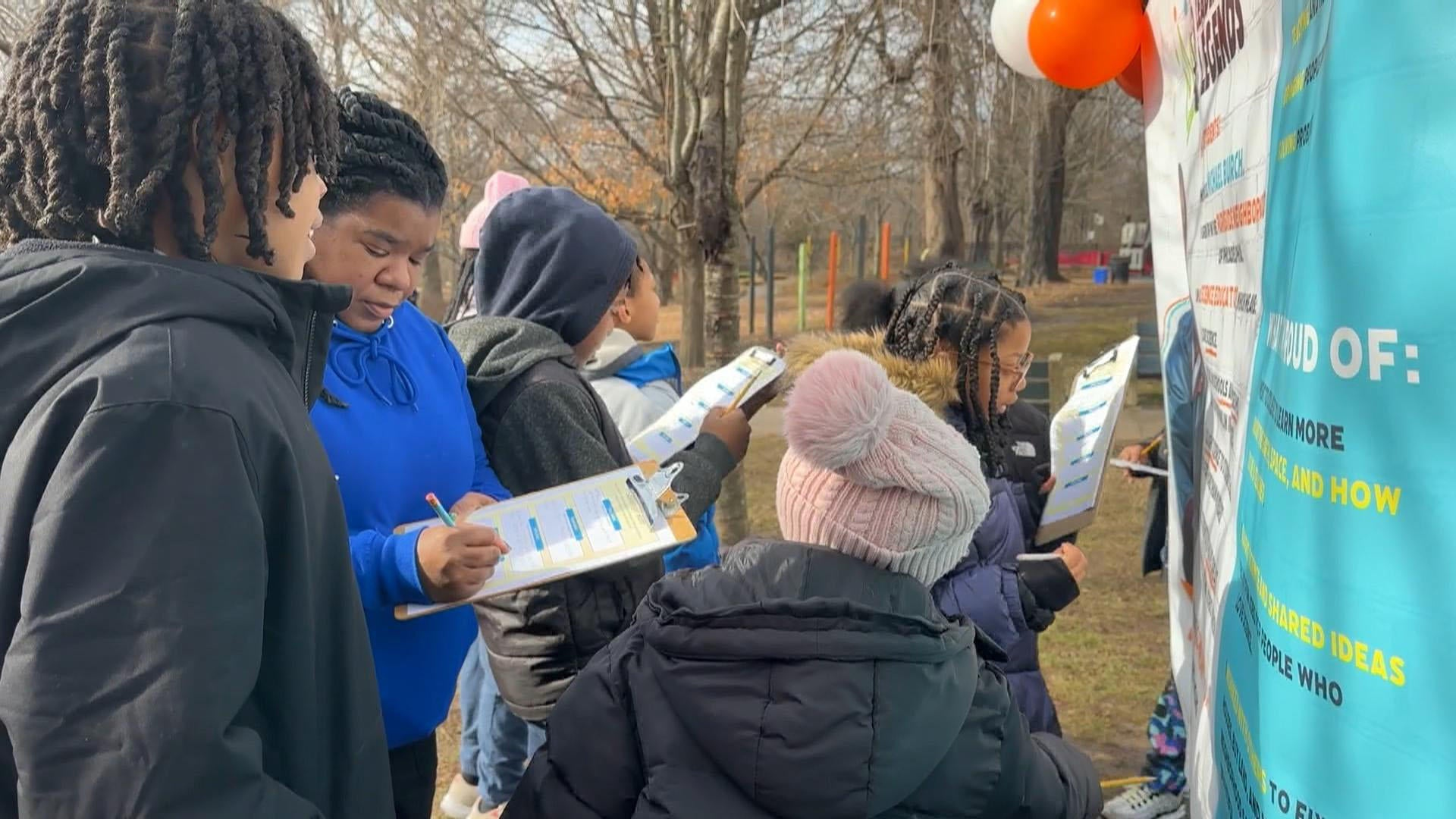 An interactive exhibit at a playground in Philadelphia is helping to teach kids about Black leaders who have shaped the city's past and present. Ten double-sided posters representing Black leaders are on display at Smith Memorial Playground with facts about each person.