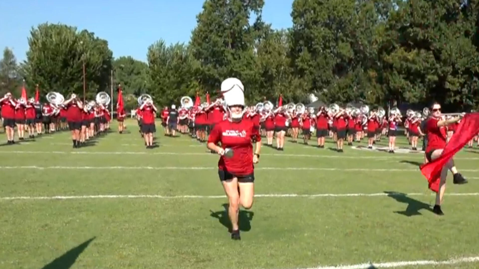 The University of Oklahoma marching band faces the extreme heat the same way the school's football team does, but the band's full-length wool uniform makes the field even hotter. Meet some of the students who endure the sun's intensity, and the nurses who help treat them.