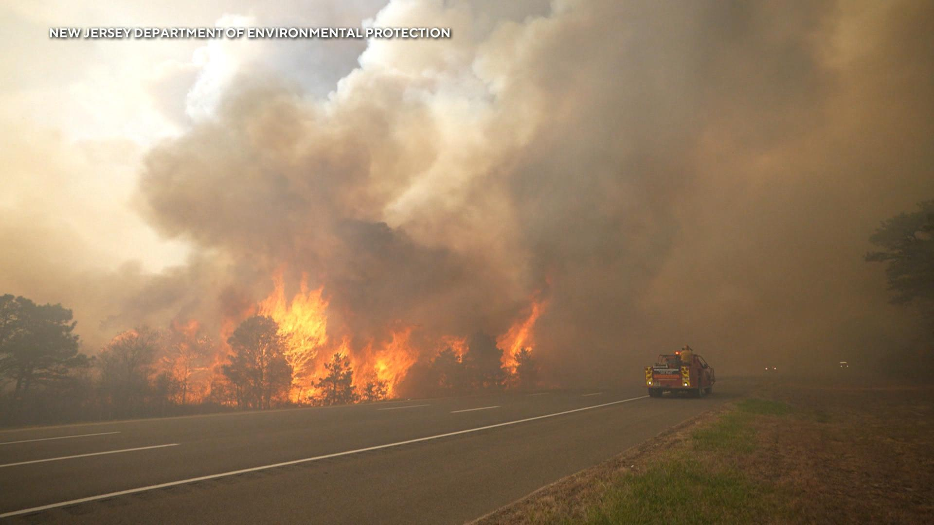 Firefighters are making progress on a wildfire in New Jersey with containment up to 50%. It has already burned more than 13,000 acres and officials warn that it could still become the state's biggest wildfire in decades.