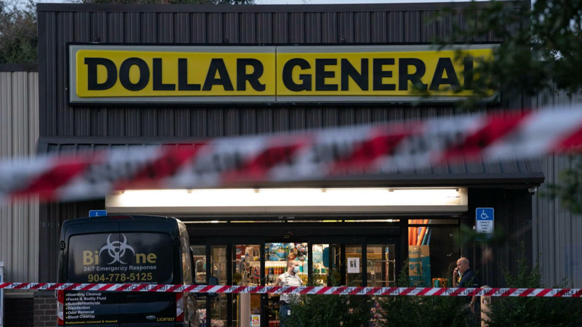More details are emerging in the racist shooting at a Dollar General store in Jacksonville, Florida, that left three Black people dead. Authorities have released surveillance video showing the gunman's whereabouts leading up to the attack. CBS News' Manuel Bojorquez reports.