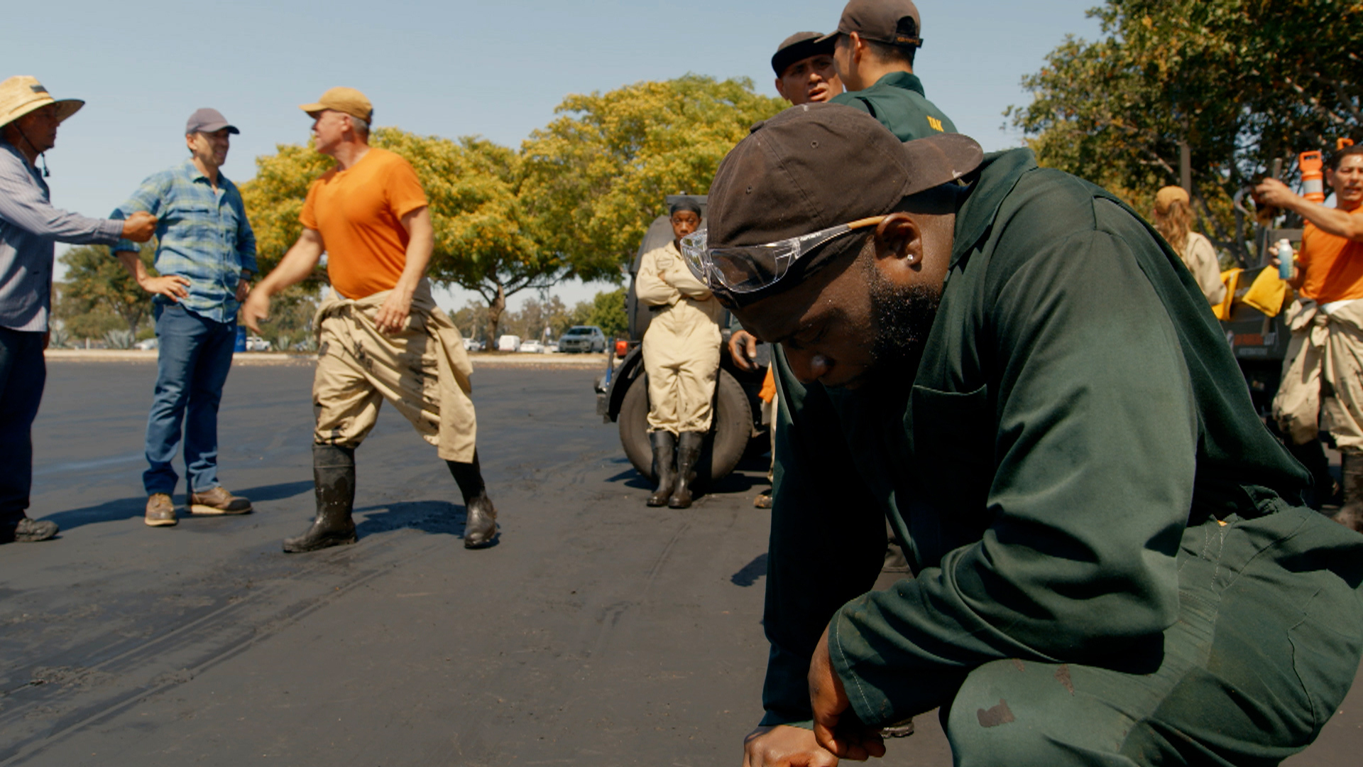 Savage Crew and Dirty Hands "pound the pavement" in the team competition where they must reseal a massive parking lot.